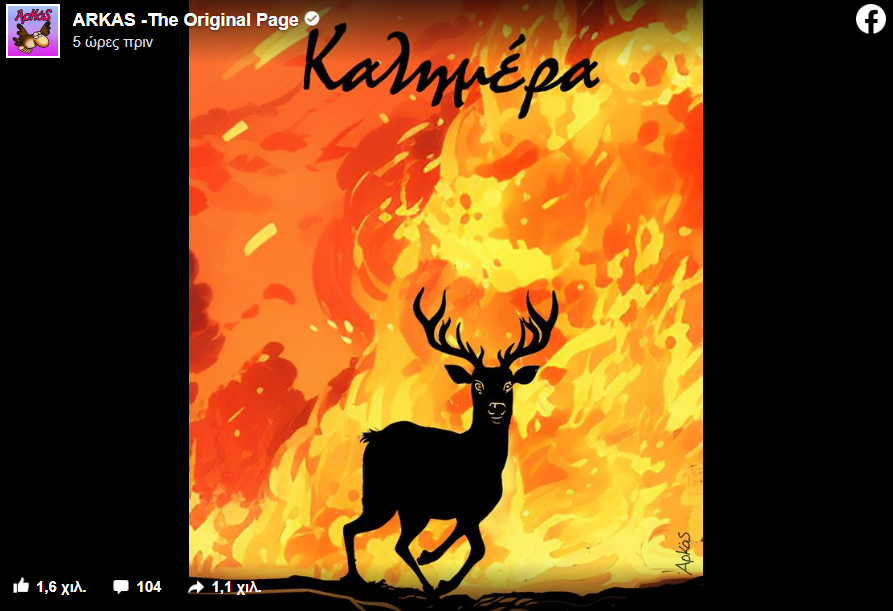 Με ένα θλιβερό σκίτσο για τις φωτιές είπε την καλημέρα του σήμερα ο Αρκάς.