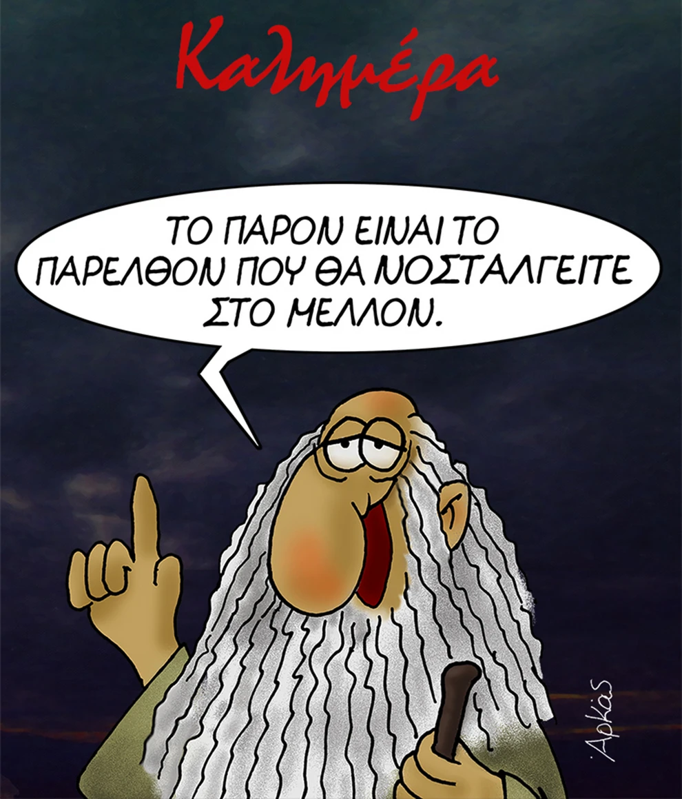Με φιλοσοφική διάθεση εμφανίστηκε σήμερα, ο γνωστός σκιτσογράφος Αρκάς.