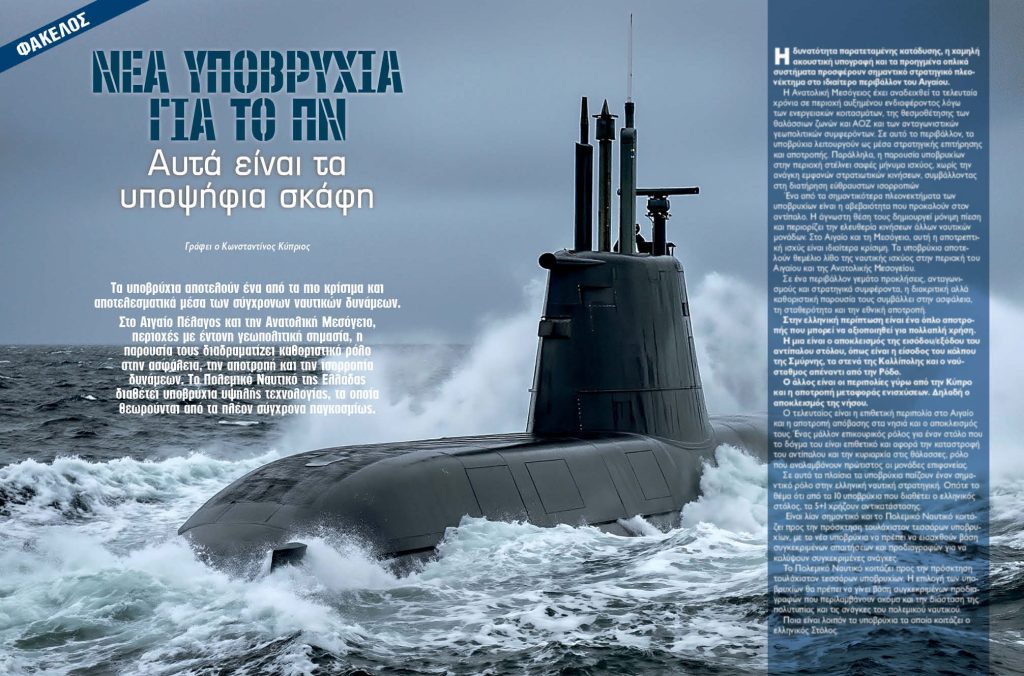 Στο νέο τεύχος του περιοδικού ΣΤΡΑΤΗΓΙΚΗ που κυκλοφορεί με τον Ελεύθερο Τύπο της Κυριακής, θα βρείτε όλο τον φάκελο για τα νέα υποβρύχια του ΠΝ.Νέα υποβρύχια για το ΠΝ