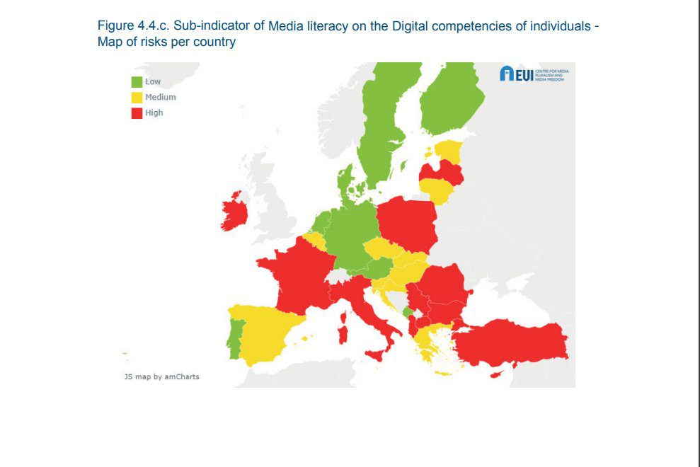 Οι δύο εικόνες δείχνουν τον χάρτη στην έκθεση του Συμβουλίου της Ευρώπης και στην πρωτότυπη έκθεση. Ο πίνακας, σε αντίθεση με τους ισχυρισμούς της Iefimerida, αναφέρεται στους κινδύνους που προκύπτουν από τον μιντιακό εγγραμματισμό και τις ψηφιακές ικανότητες των πολιτών.