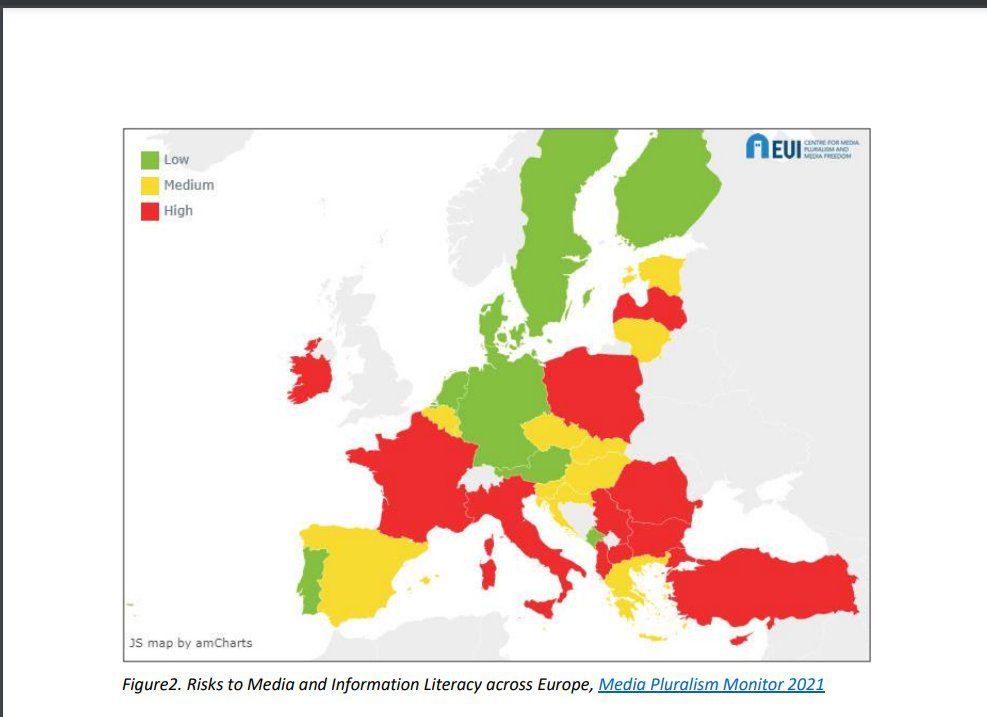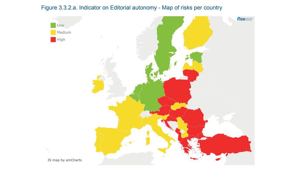 Ο πίνακας παρατίθεται στην έκθεση του Συμβουλίου της Ευρώπης αλλά προέρχεται από άλλη έκθεση και παρατίθεται εκεί ως δευτερογενές υλικό. Ο πίνακας προέρχεται από το Media Pluralism Monitor 2021.Όπως ήδη αναφέρθηκε, η έκθεση του Συμβουλίου της Ευρώπης δεν έχει καμία κατάταξη.