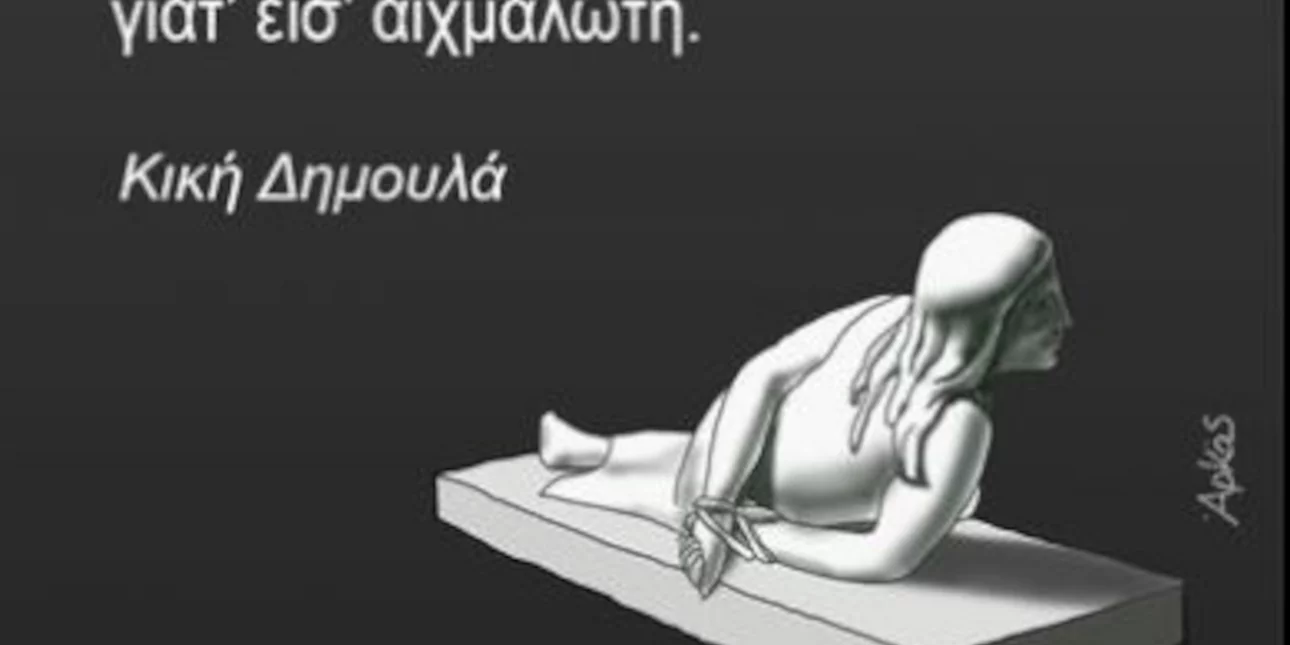 «Για τα δεμένα χέρια σου, που έχει όσους πολλούς αιώνες σε γνωρίζω, σε λέω γυναίκα. Σε λέω γυναίκα γιατ’ είσ’ αιχμάλωτη», είναι οι στίχοι του ποιήματος της Κικής Δημουλάς που επέλεξε.