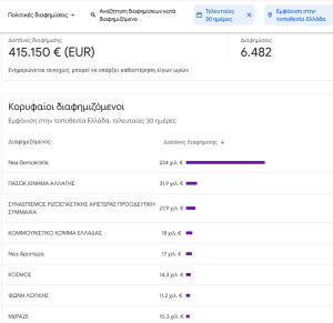 Η ΝΔ ξόδεψε 234.000 για διαφήμιση, μόνο στη Google, τις τελευταίες 30 ημέρες.