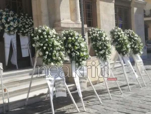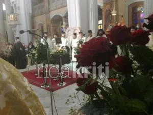 Η εξόδιος ακολουθία ξεκίνησε στις 12:00 το μεσημέρι στον Ιερό Μητροπολιτικό Ναό του Αγίου Μηνά.