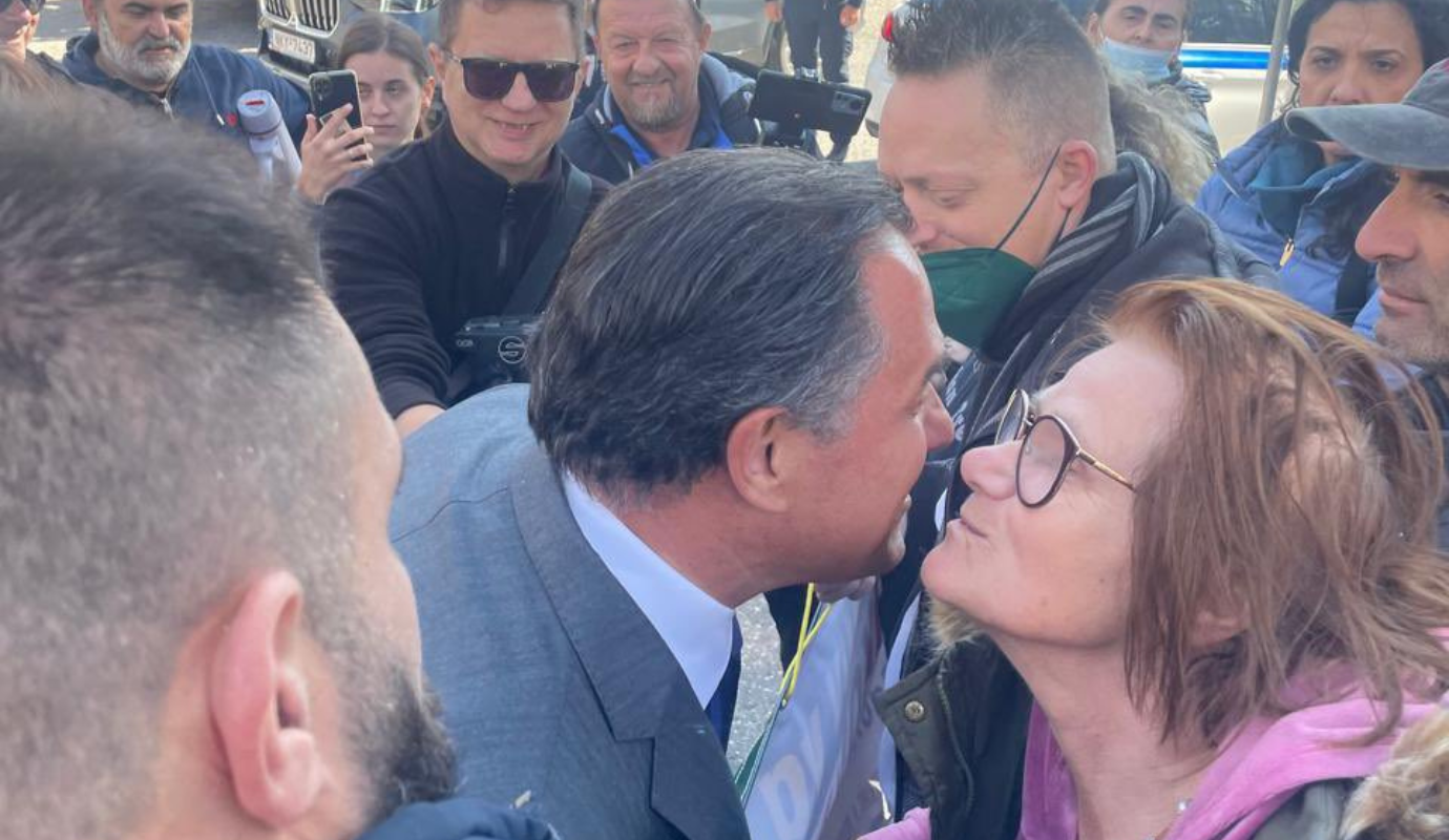 Ο Υπουργός Υγείας, Άδωνις Γεωργιάδης, είχε έναν απροσδόκητο ασπασμό με διαδηλώτρια του ΠΑΜΕ κατά την επίσκεψή του σε νοσοκομείο, στο Καρπενήσι.