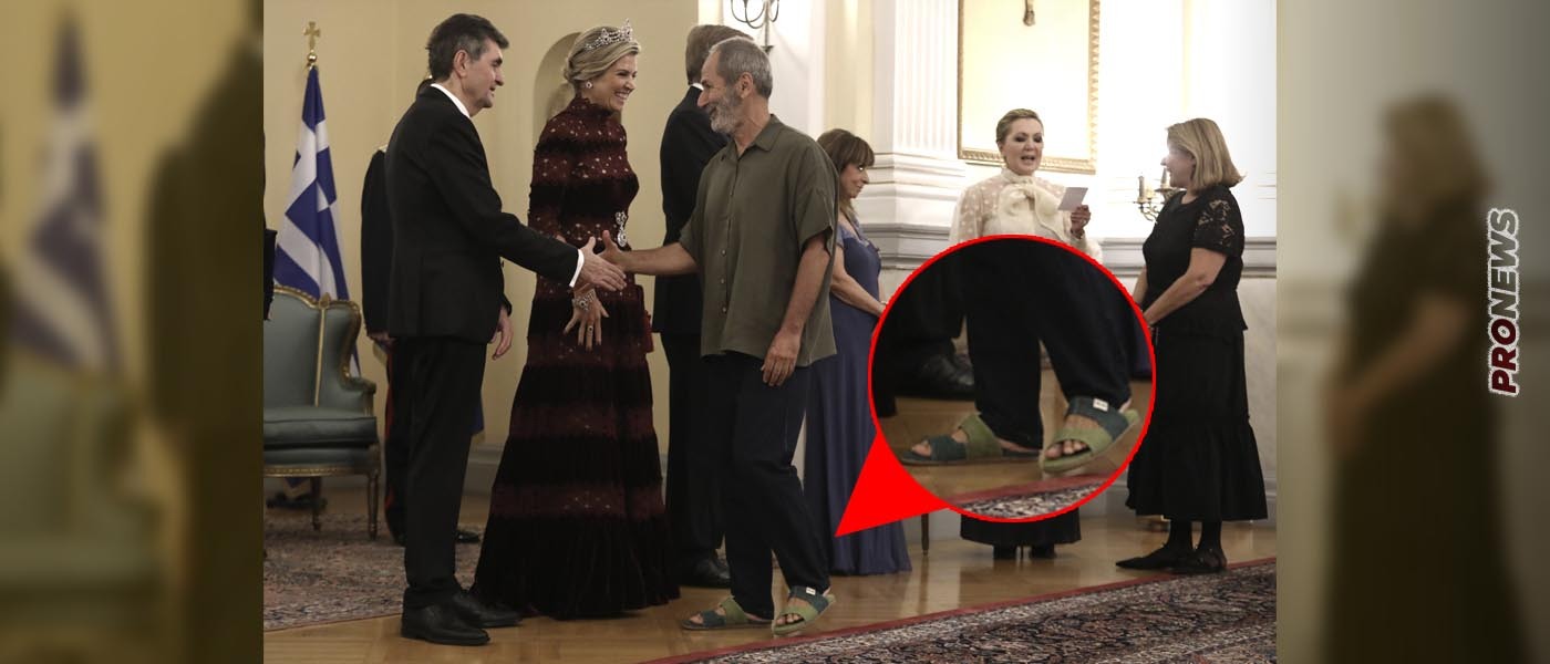 Δεν το θεωρούμε ωραίο επίσης να φαίνονται τα μπράτσα του γιατί φορούσε κοντομάνικο πουκαμισάκι δεν συνάδει με το πρωτόκολλο αλλά εν πάσει περιπτώσει δεν είναι τόσο εξοργιστικό όσο τα σανδάλια.
