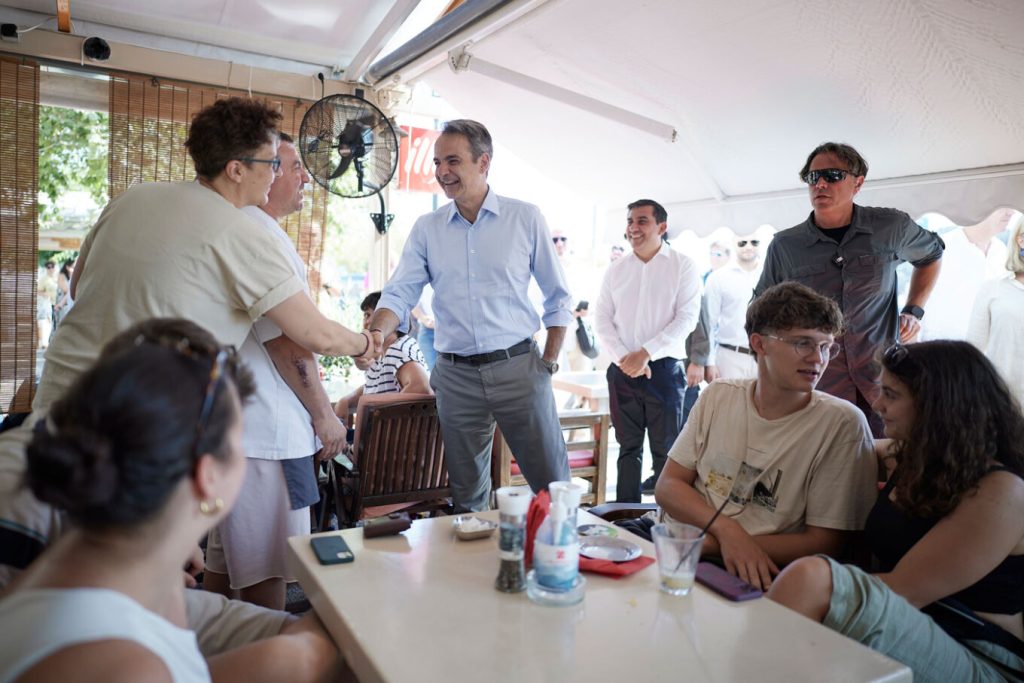 Ο Κυριάκος Μητσοτάκης βρέθηκε στην Σκιάθο, συναντώντας πολίτες και τοπικούς φορείς στο νησί.
