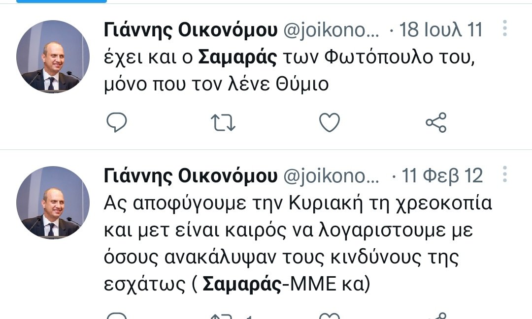 Δείτε τι έγραφε στο twitter πριν λίγα χρόνια ο κ. Οικονόμου, ο οποίος επιτιθόταν στον Αντώνη Σαμαρά επειδή αρχικά ήταν εναντίον του μνημονίου!