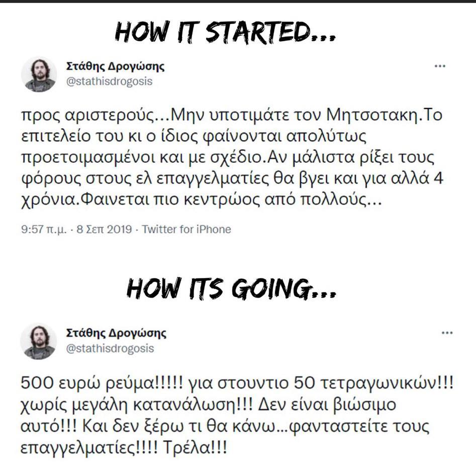 Παρόλα αυτά οι χρήστες του Twitter τον «έστησαν» στον τοίχο, καθώς θυμήθηκαν ότι Σ.Δρογώσης έχει στηρίξει την κυβέρνηση του Κυριάκου Μητσοτάκη από την πρώτη ημέρα.