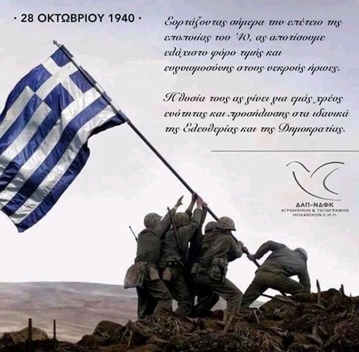 Με την ελληνική σημαία να κυματίζει στον ουρανό της… Ίβο Τζίμα, το τμήμα της ΔΑΠ – ΝΔΦΚ ανέβασε την αφίσα για να… ευχηθεί χρόνια πολλά για την εθνική επέτειο της 28ης Οκτωβρίου.