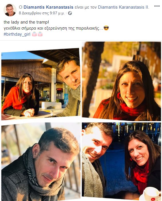 Στις 8 Δεκεμβρίου, η Ζωή Κωνσταντοπούλου βρέθηκε μαζί με τον γνωστό ηθοποιό και σκηνοθέτη στην παραλιακή. Μάλιστα, ο κ. Καραναστάσης δημοσίευσε στον λογαριασμό του στα μέσα κοινωνικής δικτύωσης, σχετικές φωτογραφίες, με τη λεζάντα «the lady and the tramp!».