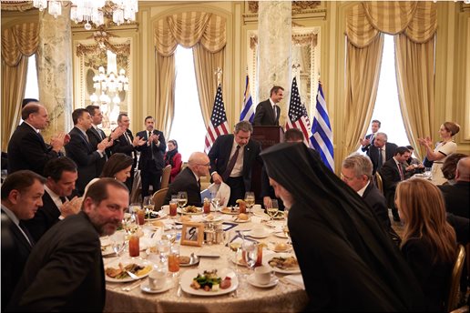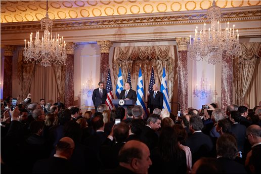 Με άρωμα Ελλάδας πραγματοποιήθηκε η δεξίωση που παρέθεσαν προς τιμήν του Κυριάκου Μητσοτάκη και της συζύγου του Μαρέβας, ο αντιπρόεδρος των ΗΠΑ Μάικ Πένς και ο ΥΠΕΞ Μάικ Πομπέο στην Ουάσιγκτον.