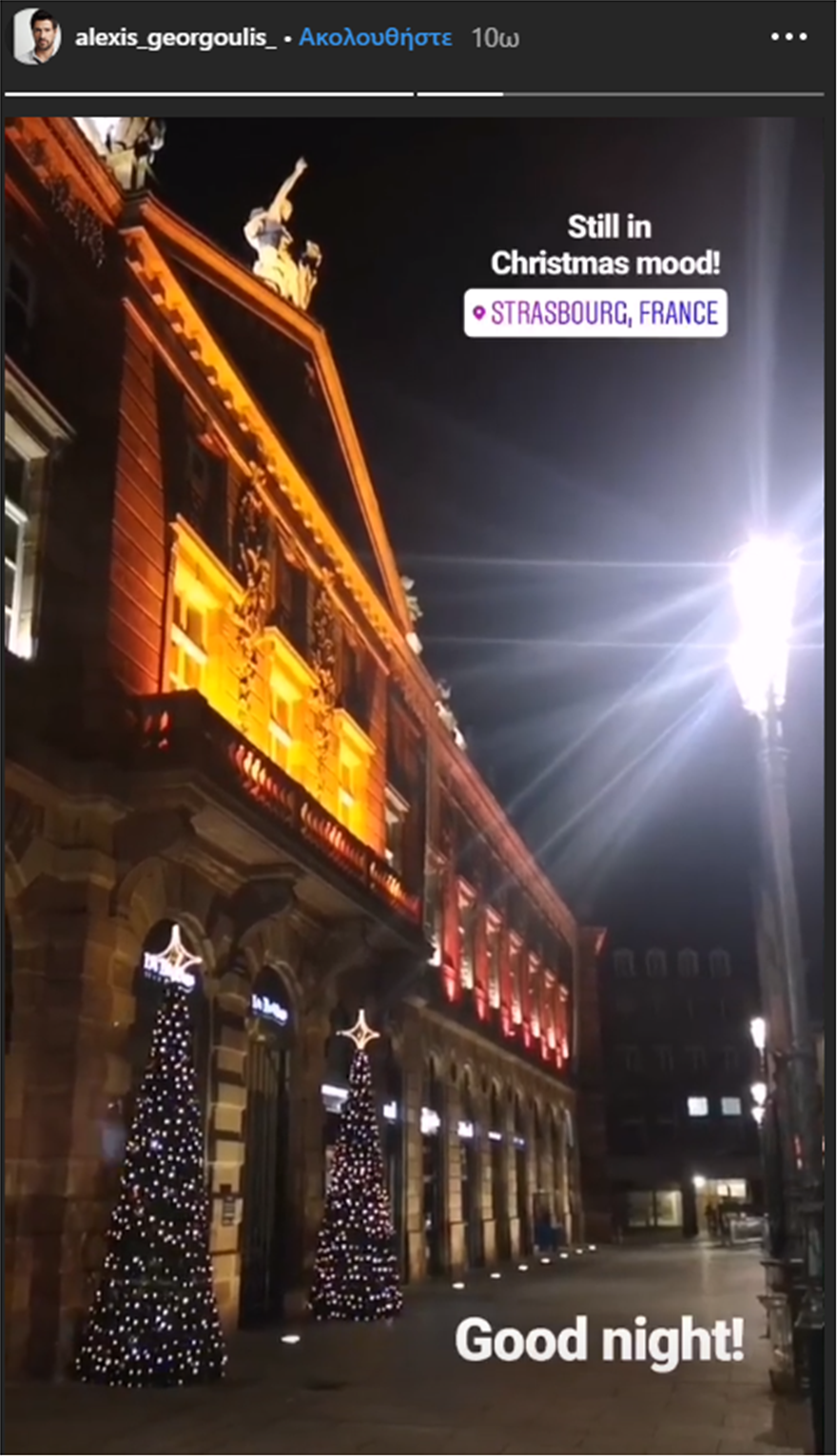 Ο ίδιος από ότι φαίνεται πάντως δεν πτοείται από όσα γράφονται για την επιλογή του. Χθες από το Στρασβούργο όπου βρίσκεται, αφού ανέβασε ένα δημοσίευμα για την έναρξη του σόου, ευχήθηκε καληνύχτα με μια φωτογραφία από το Στρασβούργο.