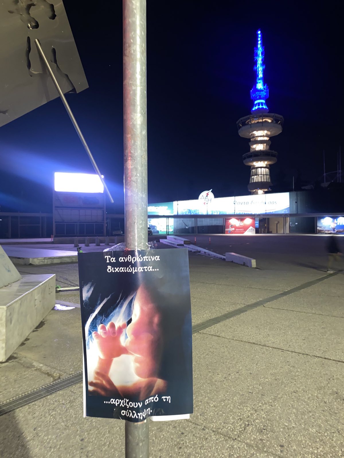 Μετά το μετρό της Αθήνας, οι υπέρμαχοι του κινήματος κατά των αμβλώσεων γέμισαν με αφίσες την Θεσσαλονίκη και άλλες πόλεις της Βορείου Ελλάδας.