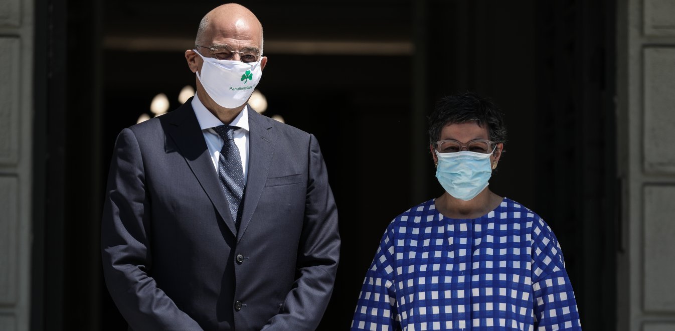 Ο υπουργός Εξωτερικών Νίκος Δένδιας συναντήθηκε σήμερα με την Ισπανίδα ομόλογο του Αράντσα Γονθάλεθ Λάγια, αυτό που προκάλεσε εντύπωση ήταν η μάσκα που φορούσε η οποία είχε πάνω στο σήμα του Παναθηναϊκού.