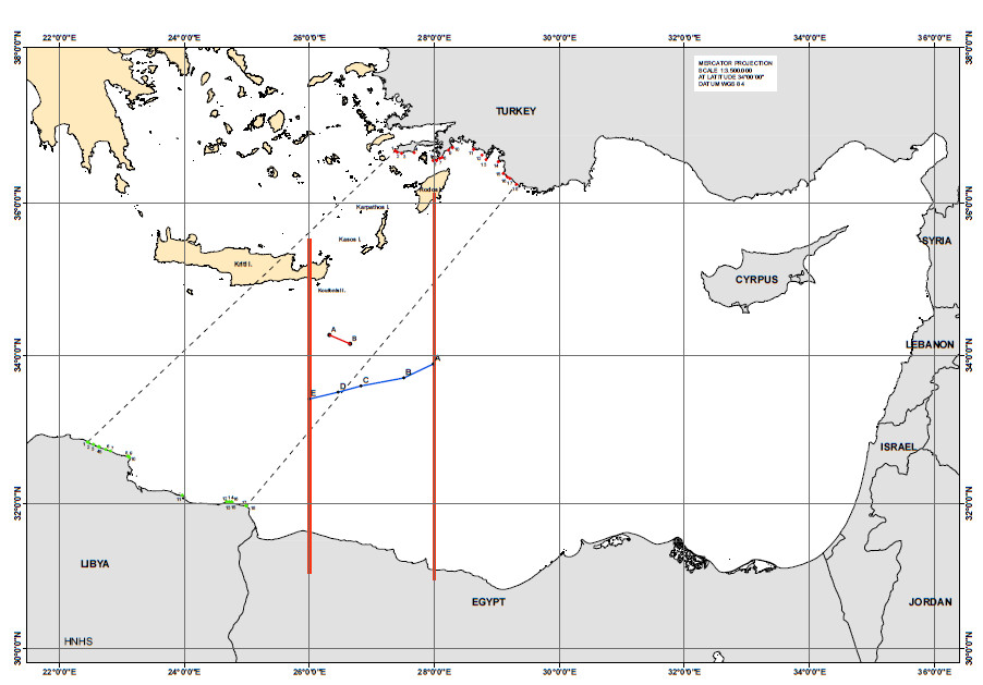Οι διακεκομμένες γραμμές αφορούν αυτές που περιλαμβάνει το τουρκολιβυκό σύμφωνο, κατά την «διαρροή» πάντα.