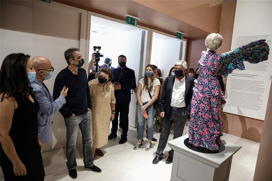 Κατά την επίσκεψή του στο Εθνικό Μουσείο Σύγχρονης Τέχνης (ΕΜΣΤ), το οποίο άνοιξε τις πύλες του στο κοινό φέτος τον Φεβρουάριο έπειτα από περίπου 20 χρόνια προσπαθειών, ο Πρωθυπουργός περιηγήθηκε μαζί με τη Λίνα Μενδώνη στη μόνιμη συλλογή του μουσείου, η οποία περιλαμβάνει 172 έργα από 78 Έλληνες και ξένους καλλιτέχνες.