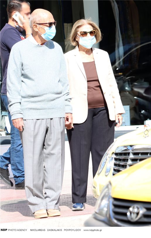 Ο Κώστας Σημίτης, συνοδευόμενος από την σύζυγό του, Δάφνη, απόλαυσε τη βόλτα του στο Κολωνάκι.