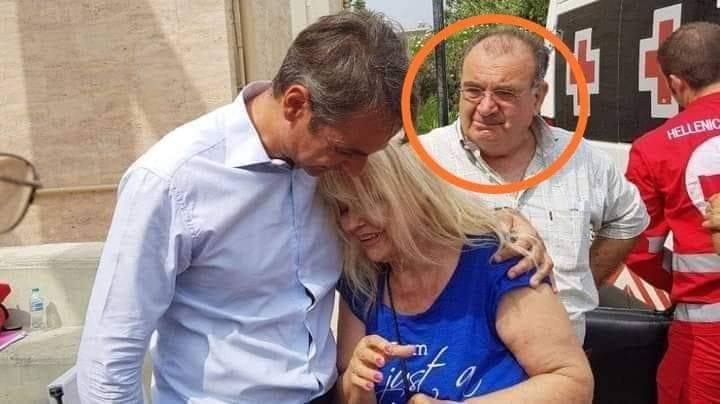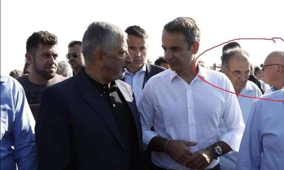 Η δεύτερη φωτογραφία πάρθηκε στο Μάτι τον Αύγουστο του 2019, στην επίσκεψη του πρωθυπουργού για την επίβλεψη των εργασιών καθαρισμού του οικοπέδου απόθεσης των καμένων δένδρων της περιοχής.