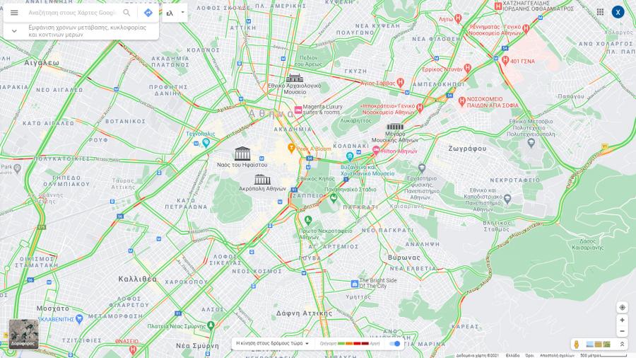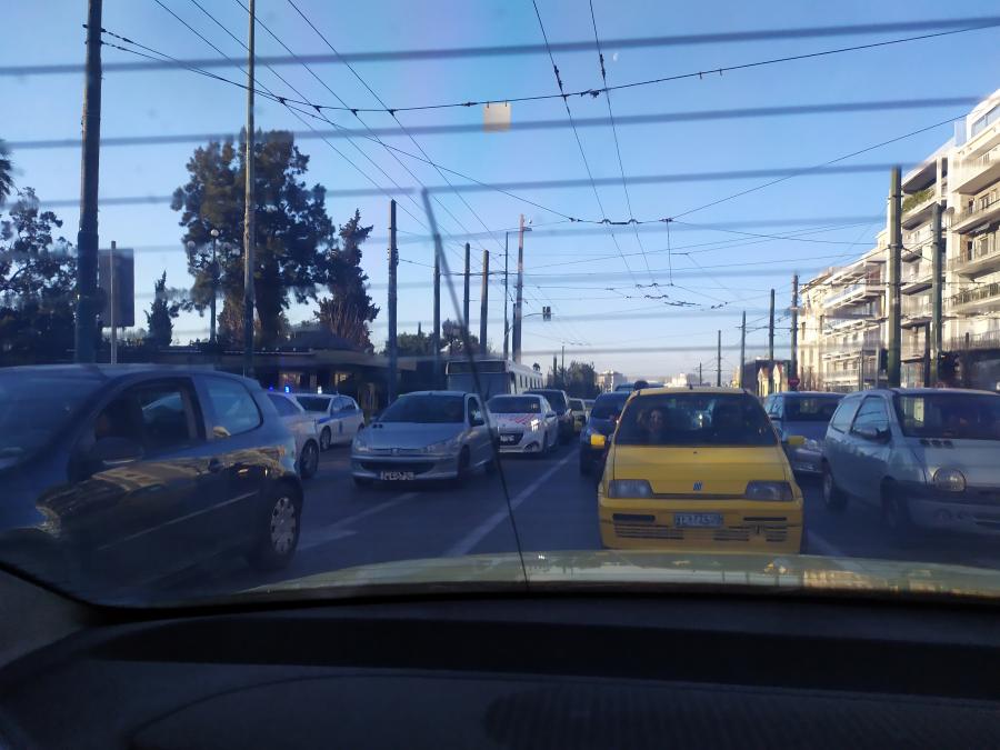 Πεζοί και ανάμεσα σε όλες τις λωρίδες κυκλοφορίας, προκάλεσαν ένα τεχνητό μποτιλιάρισμα ακριβώς στο ύψος του Ζαππείου και της συμβολής της Λεωφόρου Αμαλίας με την Φιλελλήνων. Σε μία ημέρα ελάχιστου κυκλοφοριακού φόρτου, όπως φαίνεται στους χάρτες από τα google maps την ίδια ώρα, στο συγκεκριμένο σημείο προκλήθηκε έμφραγμα.