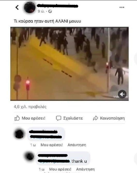 Όσον αφορά τον 22χρονο ένας χρήστης των κοινωνικών δικτύων άφησε ένα σχόλιο σε μία διαδικτυακή του φίλη που τον έκανε «tag» κάτω από ένα βίντεο των επεισοδίων στη Νέα Σμύρνη. Αυτός ήταν και ο λόγος που βρέθηκε ο νεαρός στο στόχαστρο των αρχών, παρότι ο ίδιος φέρεται να διαμένει στο Μενίδι, και δεν βρέθηκε καν στη Νέα Σμύρνη κατά τη διάρκεια της κινητοποίησης.