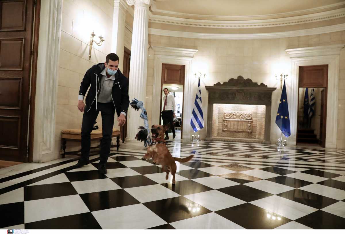 Ο σκύλος «έκοβε» βόλτες πάνω – κάτω και έπαιζε σαν να μην υπάρχει αύριο μέσα στο Μέγαρο και φυσικά δεν υπήρχε ένας άνθρωπος να τον μαζέψει για την μία ώρα που θα διαρκούσε η συνάντηση Μητσοτάκη – Ρέγκλινγκ.