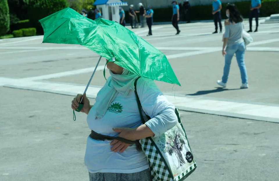 Η ηλικιωμένη κυρία, αγνώστων στοιχείων, έκανε την εμφάνισή της με τη φανέλα του ΠΑΣΟΚ, κρατώντας και μια πράσινη ομπρέλα για να προφυλαχθεί από τον ήλιο.