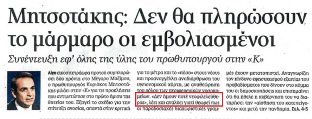 Ο πρωθυπουργός Κυριάκος Μητσοτάκης, έδωσε μια συνέντευξη εφ’ όλης της στην «Καθημερινή», κάνοντας απολογισμό στη μέση της τετραετίας.