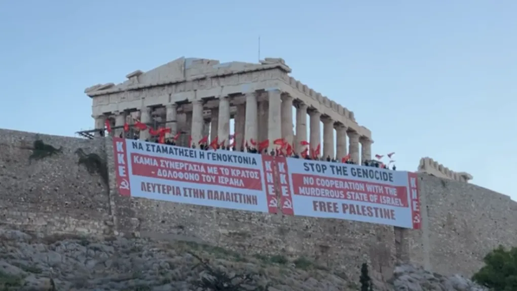 Την αντίδραση της Αφροδίτης Λατινοπούλου προκάλεσε η κίνηση 60 έως 70 στελεχών του ΚΚΕ να αναρτήσουν στην Ακρόπολη πανό με θέμα την κατάσταση στην Λωρίδα της Γάζας.