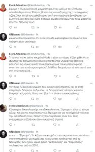 Ανάμεσα σε αυτούς που σχολίασαν την ανάρτησή της ήταν ο, προφανώς υποστηρικτής του καθεστώτος Ζελένσκι, Ελληνουκρανός δημοσιογράφος και κάτοικος Κιέβου Κώστα Ονισένκο που της επιχείρησε να «ξεπλύνει» το Τάγμα Αζόφ και να την τρομοκρατήσει γράφοντας: «Και από που προκύπτει ότι είναι νεοναζί; Καταλαβαίνετε ότι αυτό που γράφετε είναι μηνύσιμο».