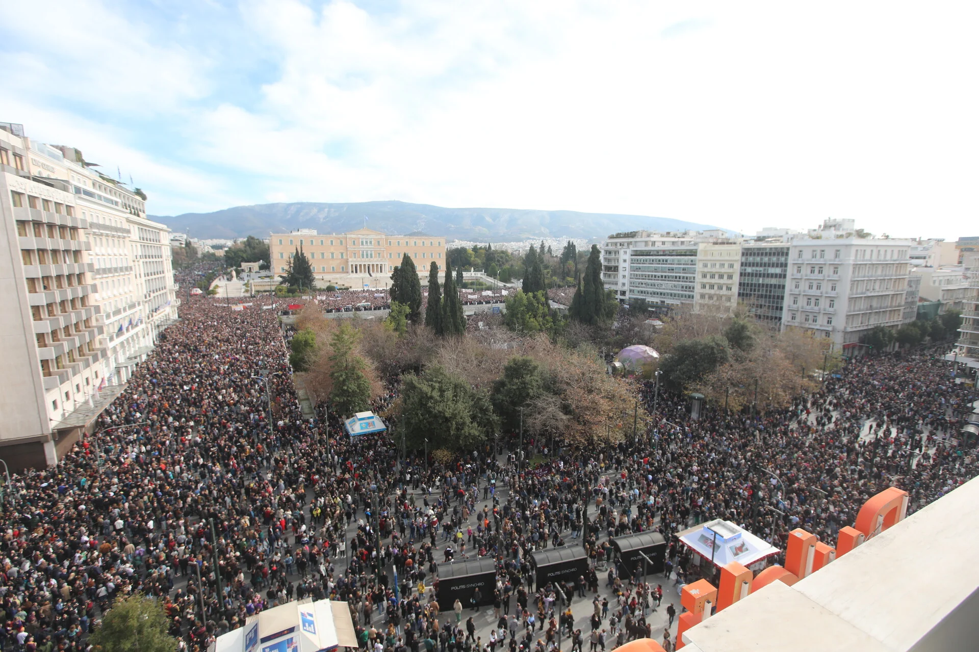 Μικρή ένταση σημειώθηκε λίγο νωρίτερα στη μεγάλη συγκέντρωση για το έγκλημα των Τεμπών στο Σύνταγμα.