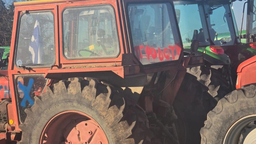 Έγραψαν με μπλε και κόκκινη μπογιά τη λέξη «προδότης» πάνω στα τρακτέρ