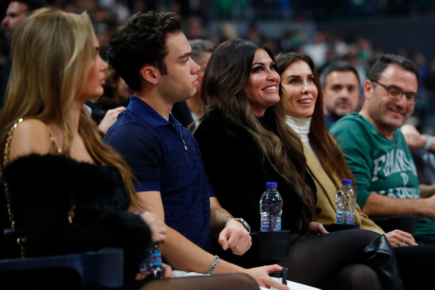 Η πρέσβης των ΗΠΑ συνοδεύεται από τον γιο της και άλλα άτομα της παρέας της που συνηθίζουν να τη συνοδεύουν στις εξόδους της, ενώ δεν κάθεται στα επίσημα, αλλά σε θέσεις διπλά στο παρκέ.