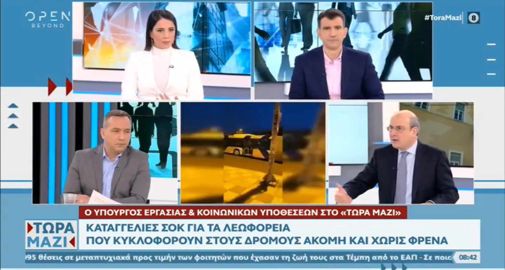 Το κανάλι όμως είχε ένα ρεπορτάζ για τα λεωφορεία – σαπάκια και τις καταγγελίες των οδηγών και των εργαζομένων και ζήτησε από τον Χατζηδάκη να τοποθετηθεί.