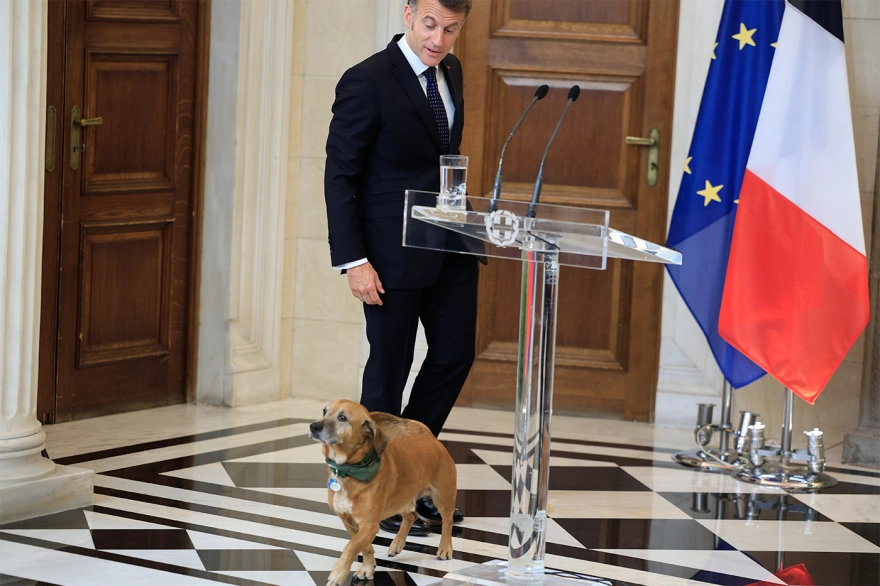 Σε πιο χαλαρή ατμόσφαιρα, μακριά από τη σοβαρότητα των υπογραφών για τη στρατηγική συμφωνία Ελλάδας–Γαλλίας, ο Εμανουέλ Μακρόν είχε μια σύντομη αλλά χαρακτηριστική στιγμή στο Μέγαρο Μαξίμου, όταν ασχολήθηκε με τον Πίνατ, τον σκύλο του Κυριάκου Μητσοτάκη.