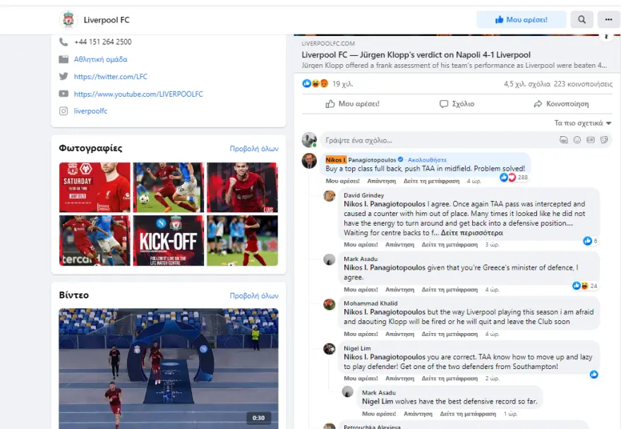 Με σχόλιό του σε ανάρτηση του επίσημου λογαριασμού των «κόκκινων», το μέλος της ελληνικής κυβέρνησης κατέθεσε τη συμβουλή του για το πώς θα βγει από το αγωνιστικό τέλμα ομάδα, προτείνοντας την αγορά ενός πρωτοκλασάτου δεξιού μπακ και τη μετατόπιση του Τρεντ Αλεξάντερ-Άρνολντ στον άξονα!