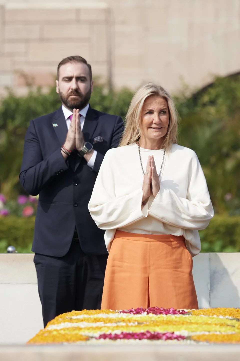 Η Μαρέβα Γκραμπόβσκι, συνόδευσε τον πρωθυπουργό και σύζυγό της Κυριάκο Μητσοτάκη στο Νέο Δελχί, ντυμένη στα… χρώματα της Ινδίας.