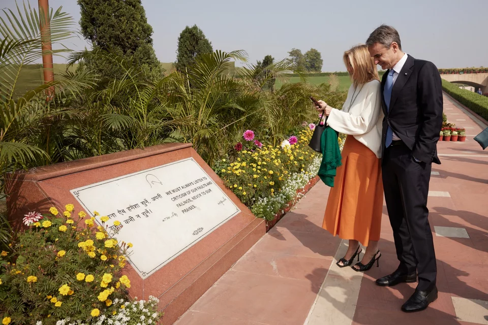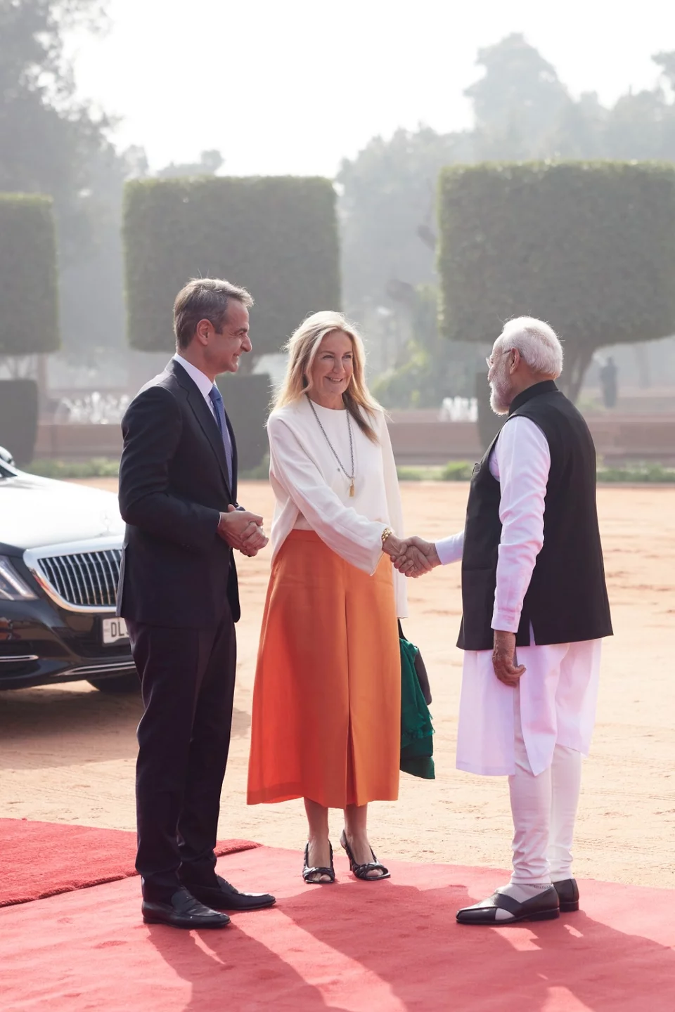 Η Μαρέβα Γκραμπόβσκι, συνόδευσε τον πρωθυπουργό και σύζυγό της Κυριάκο Μητσοτάκη στο Νέο Δελχί, ντυμένη στα… χρώματα της Ινδίας.