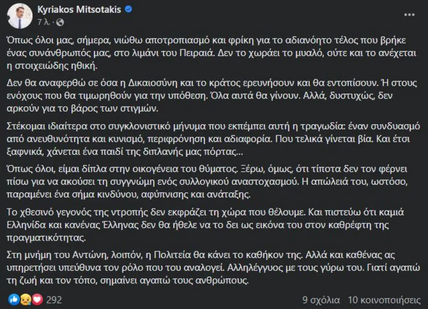 Χαρακτηριστική ήταν η ανάρτηση του ίδιου του πρωθυπουργού Κυριάκου Μητσοτάκη, με την οποία επί της ουσίας «κρέμασε στα μανταλάκια» τον υπουργό.