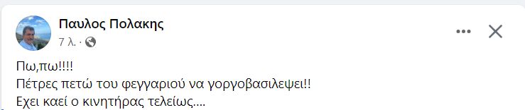 «Πω,πω! Πέτρες πετώ του φεγγαριού να γοργοβασιλεψει! Έχει καεί ο κινητήρας τελείως….» έγραψε χαρακτηριστικά ο Π.Πολάκης.