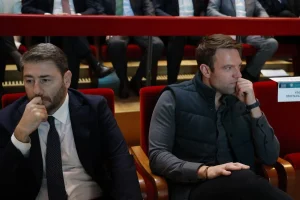 Ψυχρό ήταν το κλίμα ανάμεσα στον Στέφανο Κασσελάκη και τον Νίκο Ανδρουλάκη, όπως και η χειραψία τους, στη συνάντηση που είχαν κατά τη διάρκεια εκδήλωσης στο ίδρυμα Σταύρος Νιάρχος.