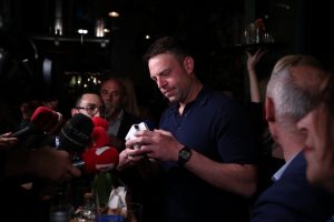 Στο πάρτι γενεθλίων του, ο Στέφανος Κασσελάκης συνοδεύτηκε από τον σύζυγό του, Τάιλερ Μακμπέθ, ο οποίος είχε επιστρέψει από τις ΗΠΑ, ενώ νωρίτερα είχαν επισκεφθεί μια ψαροταβέρνα στη Θήβα.