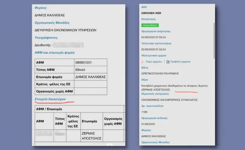 Ενώ εργάζεται στο υπουργείο Μετανάστευσης, ο ίδιος κατέθεσε αίτηση στις 14 Απριλίου 2020 στον Δήμο Καλλιθέας προκειμένου να λάβει βοήθημα άπορου πολίτη. Στις 2 Ιουνίου οριστικοποιήθηκε η απόφαση της πληρωμής, ωστόσο στο χρηματικό ένταλμα δεν φαίνονται το όνομά του και ο ΑΦΜ του.