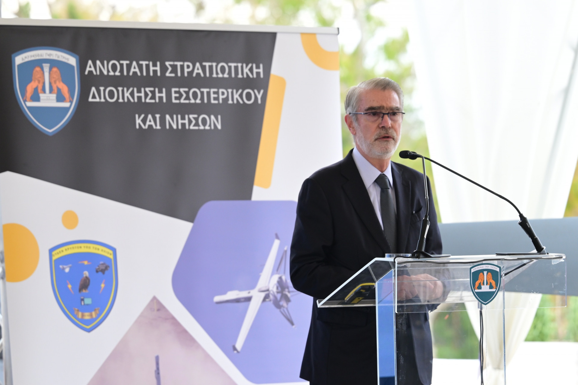 «Το νέο ερευνητικό μας κέντρο, το ΕΛΚΑΚ, έχει ήδη προκηρύξει τέσσερα καινοτόμα προγράμματα ανάπτυξης μη επανδρωμένων και θα προκηρύξει άλλα δύο μέχρι το τέλος του χρόνου, εντάσσοντάς τα σε ένα νέο δόγμα και σε μια νέα συνολική προσέγγιση. Ό,τι βλέπετε, ό,τι θα δείτε, αποτελούν υποσυστήματα αυτής της ολιστικής προσέγγισης που λέγεται “Ασπίδα του Αχιλλέα”.