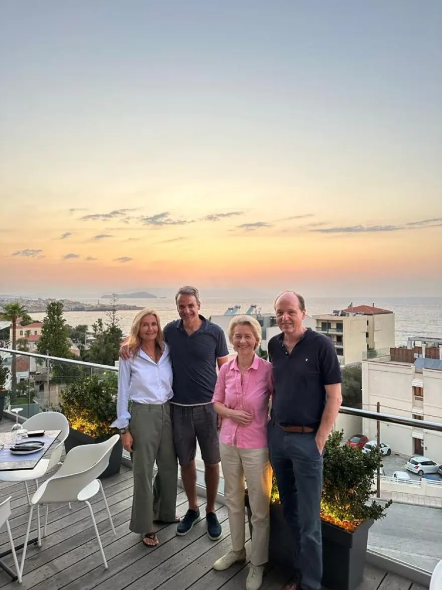 Οι υψηλοί προσκεκλημένοι, η Ούρσουλα φον ντερ Λάιεν και ο σύζυγός της Γερμανός γιατρός, Χάικο φον ντερ Λάιεν, έχουν ταξιδέψει στην Κρήτη για ένα μικρό διάλειμμα από τις υποχρεώσεις τους και μένουν στη βίλα Μητσοτάκη, στο Ακρωτήρι.