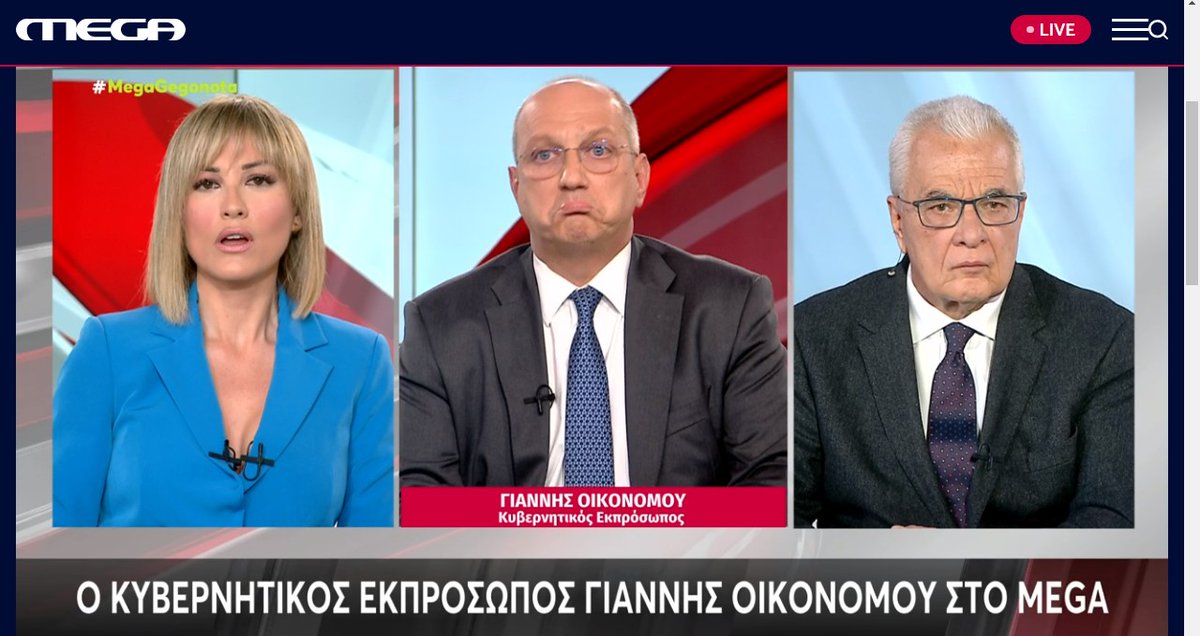 Δεν φαίνεται να πήγε και πολύ καλά η συνέντευξη του κυβερνητικού εκπροσώπου στο MEGA. Η Ράνια Τζίμα ρωτούσε, ο Γιάννης Οικονόμου μπέρδευε τα λόγια του και ο Γιάννης Πρετεντέρης μάλλον δυσφορούσε με τις ερωτήσεις.