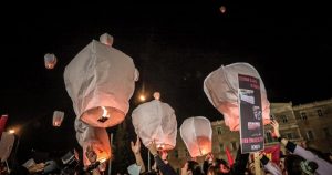 Δεκάδες φαναράκια άφησαν στον ουρανό οι εκατοντάδες διαδηλωτές