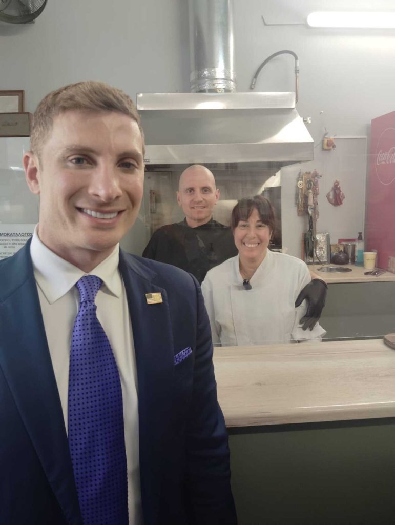 Ο υφυπουργός Εξωτερικών των ΗΠΑ, Τζέικομπ Χέλμπεργκ, βρέθηκε σε σουβλατζίδικο στη Μητροπόλεως, όπου τον αναγνώρισαν και του ζήτησαν να φωτογραφηθεί με τους υπαλλήλους.