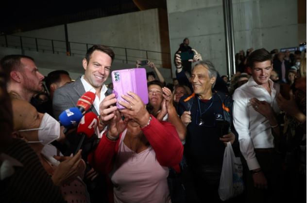 Με σέλφι και καπνογόνα υποδέχτηκαν τον έκπτωτο πρόεδρο του ΣΥΡΙΖΑ, Στέφανο Κασσελάκη, στο χώρο των νέων γραφείων του που εγκαινιάστηκαν σήμερα (23/10) στον Ταύρο.