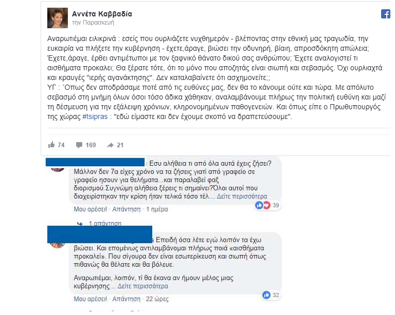 Η ανάρτηση της Αν.Καββαδία προκάλεσε θύελλα αντιδράσεων (φωτο)